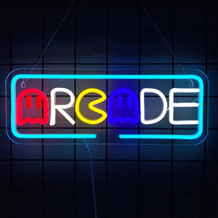Arcade Neon Light - Gaming LED Sign Wall Gift Man Cave 80s Retro Pacman Ghost