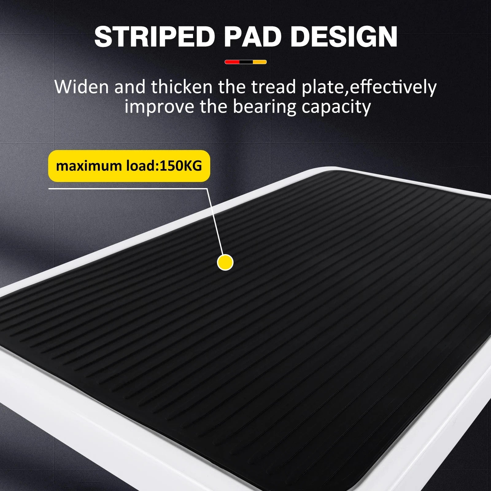 Padded step surface for added safety and easy cleaning.