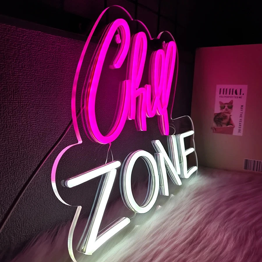 Chill Zone Neon Light - Relaxing Pink LED Sign - Games Room Bedroom Bar etc