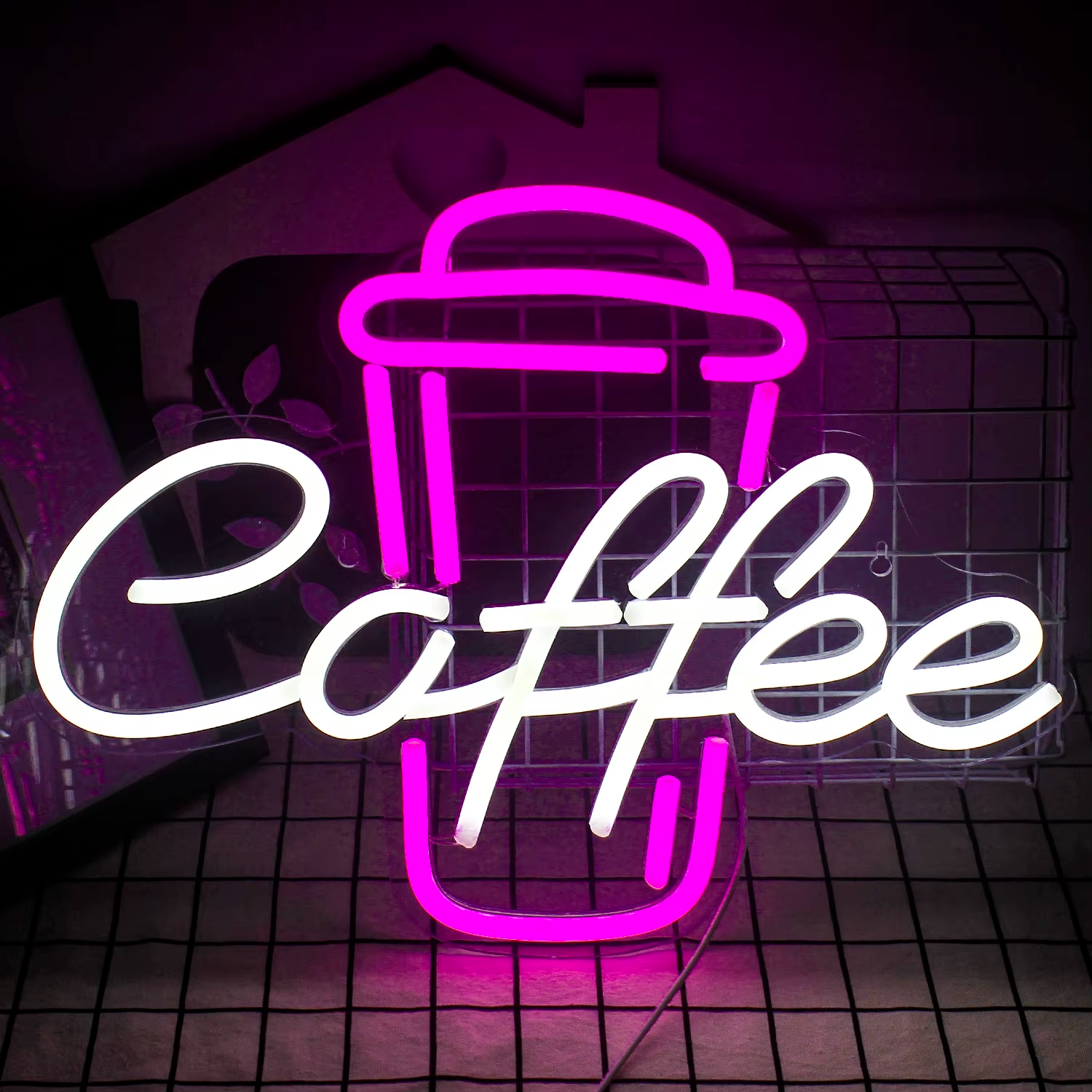 Coffee Cup White & Pink Neon Sign - LED