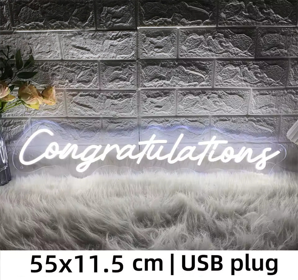 Congratulations Neon Sign - White LED Light - Wall Wedding Bride Hen Party USB