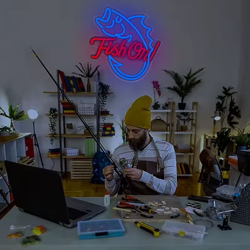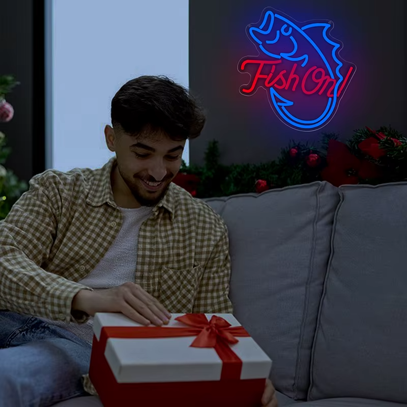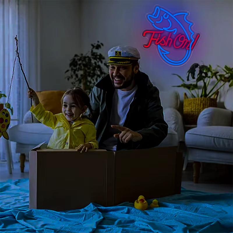 Fish On! Neon Light - LED Chip Shop / Bar Sign - Fishing Home Club Man Cave