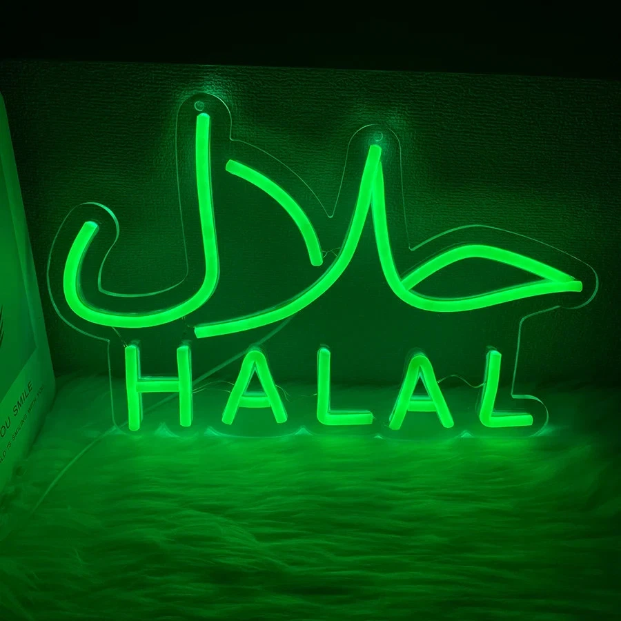 HALAL Neon Sign - LED Light USB Powered - Restaurants, Shops & Takeaway Islamic