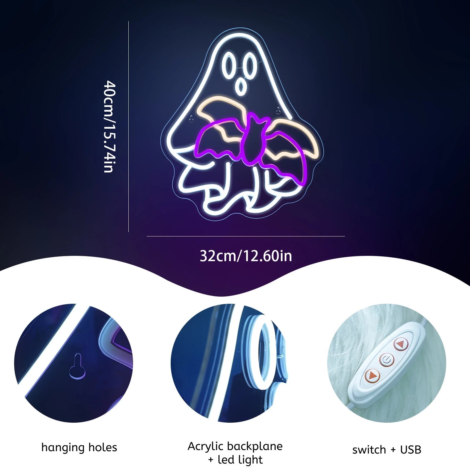 Halloween Ghost Neon Light - LED Bat Sign