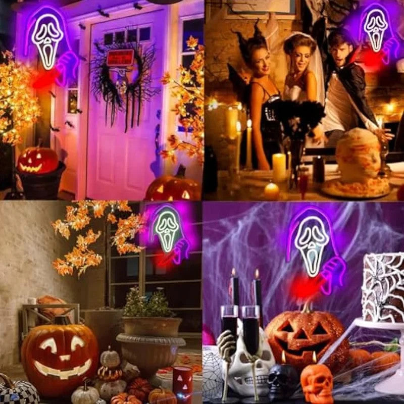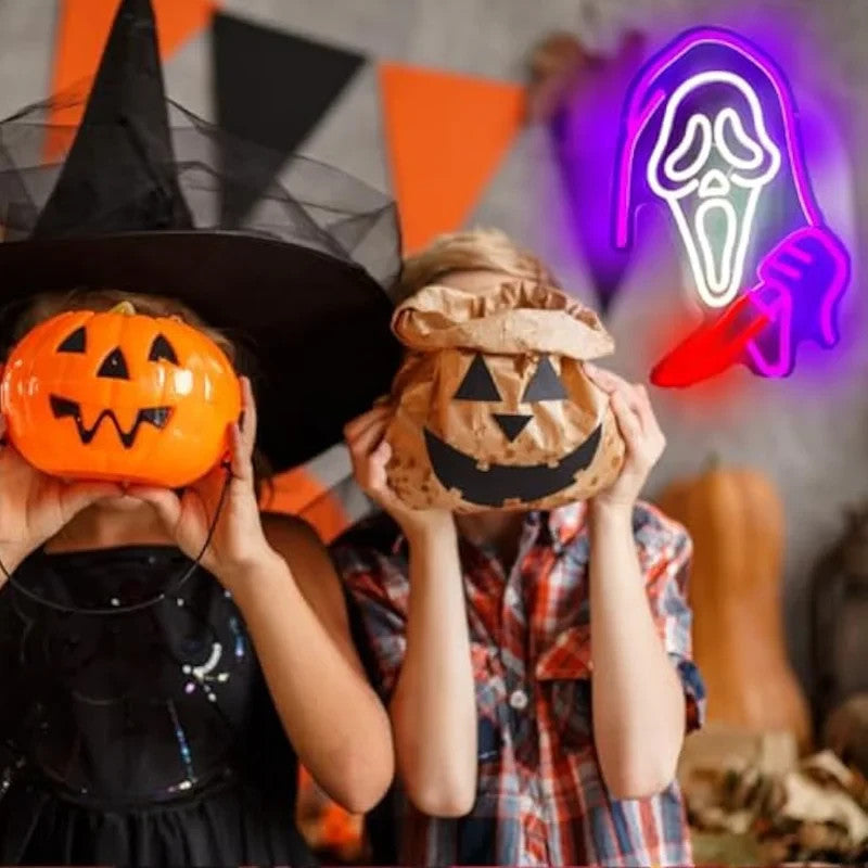 Halloween Neon Sign - LED Spooky Ghost Knife Light - Pub Home Play Area Maze Bar