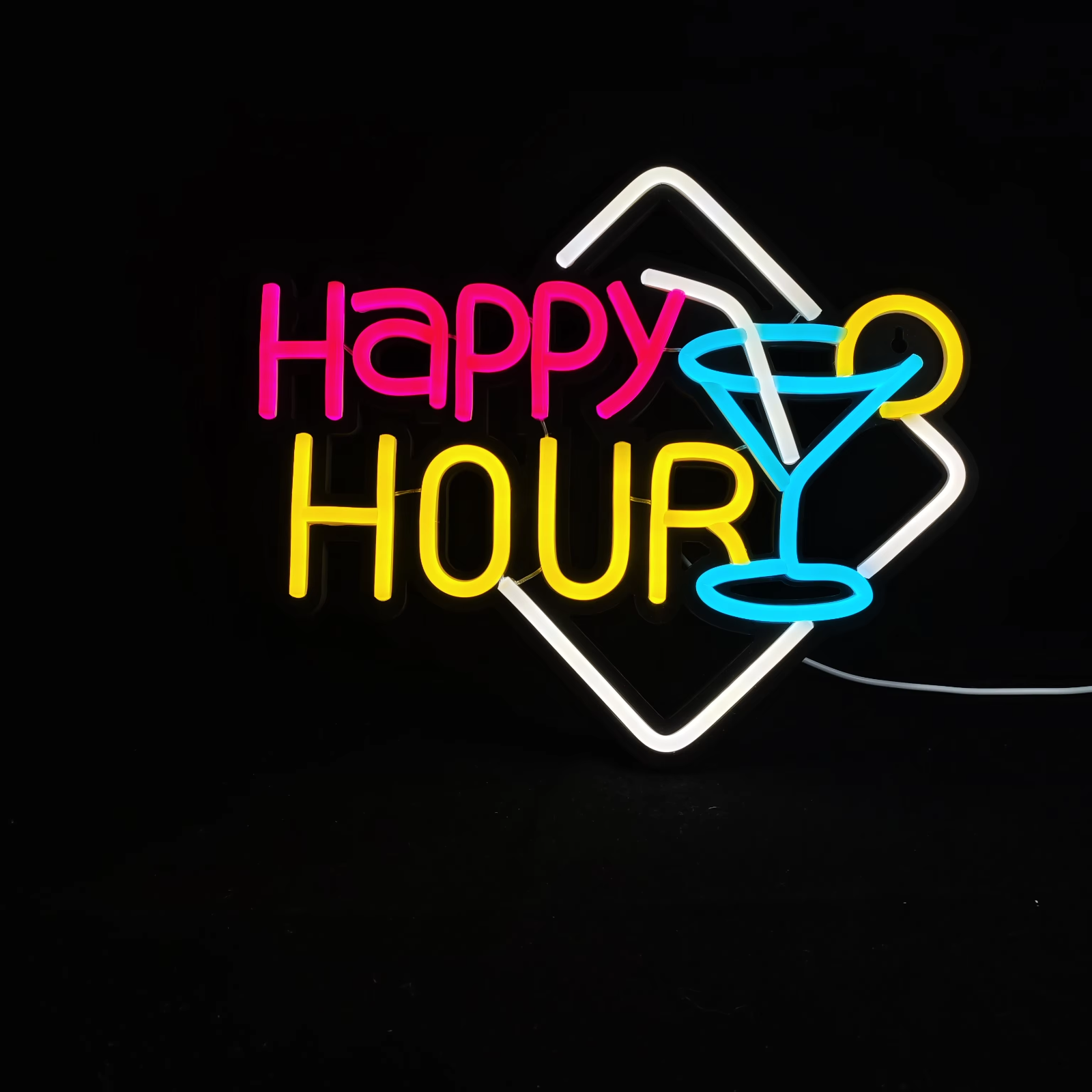 Happy Hour Neon Light - Cocktail Bar Sign - Pub Home Club etc LED