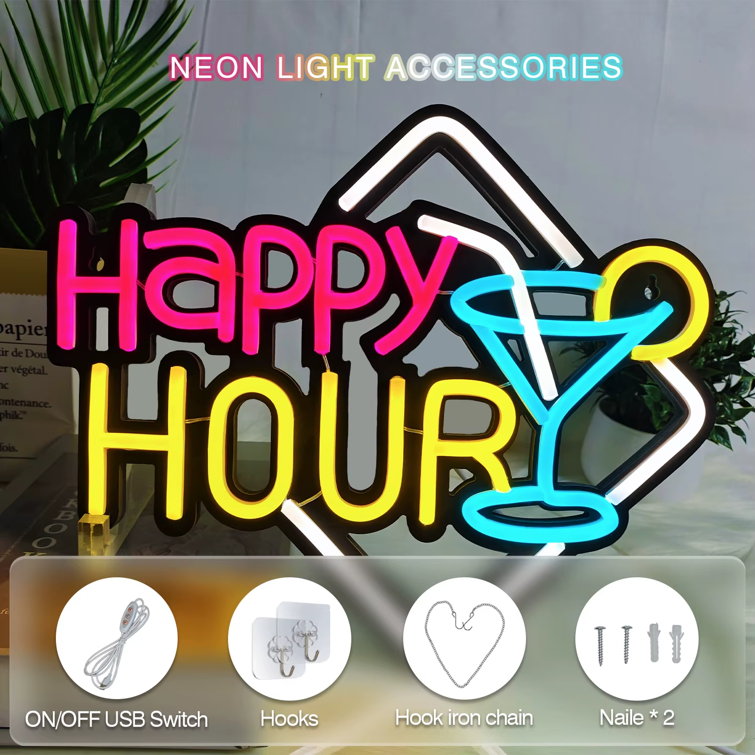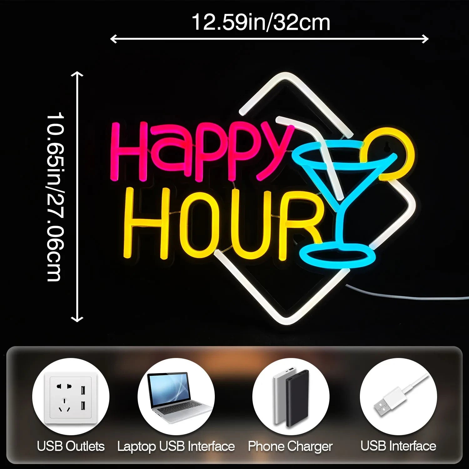 Happy Hour Neon Light - Cocktail Bar Sign LED