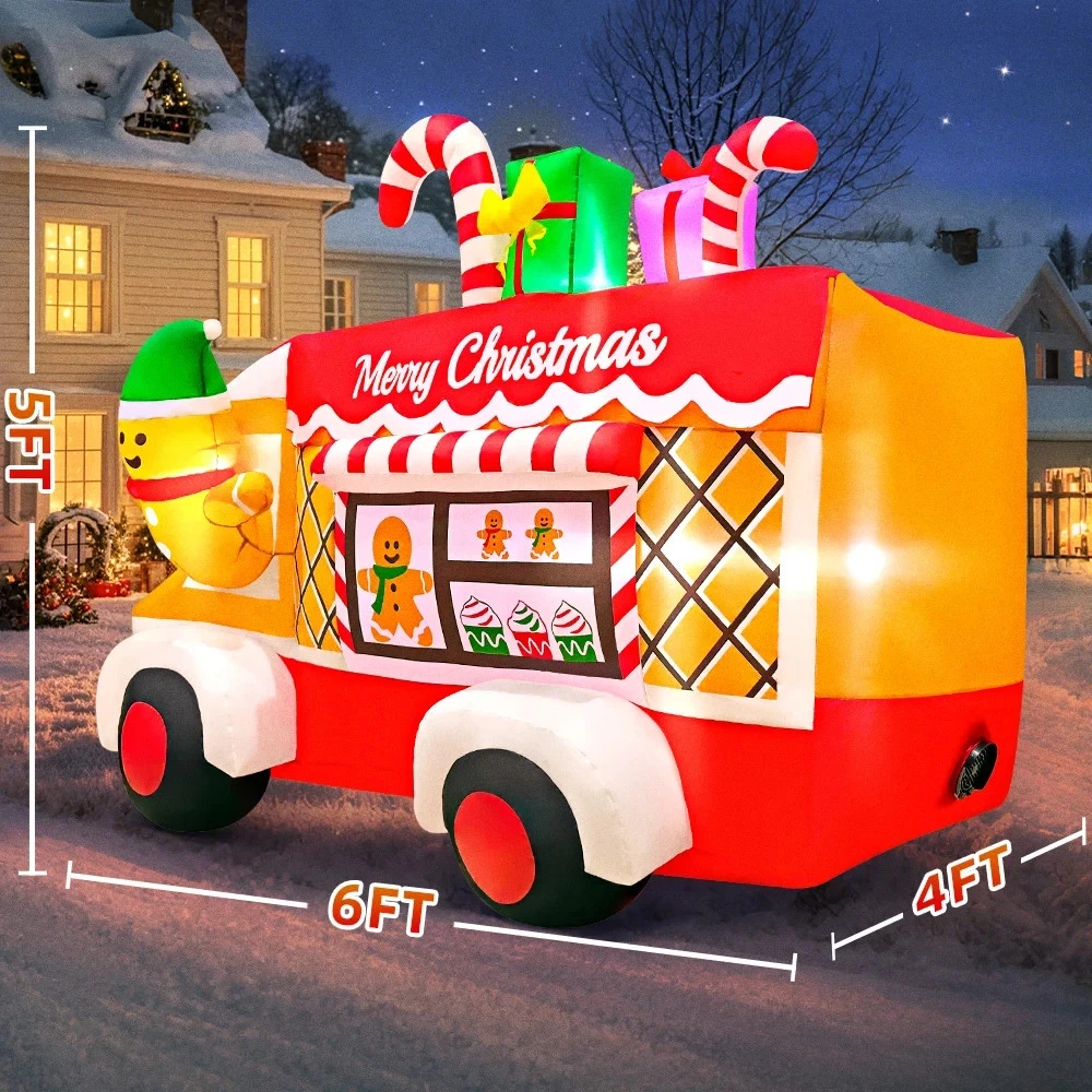 Large Inflatable Christmas Van Truck Outdoor Xmas Decoration 5ft Light up Santa
