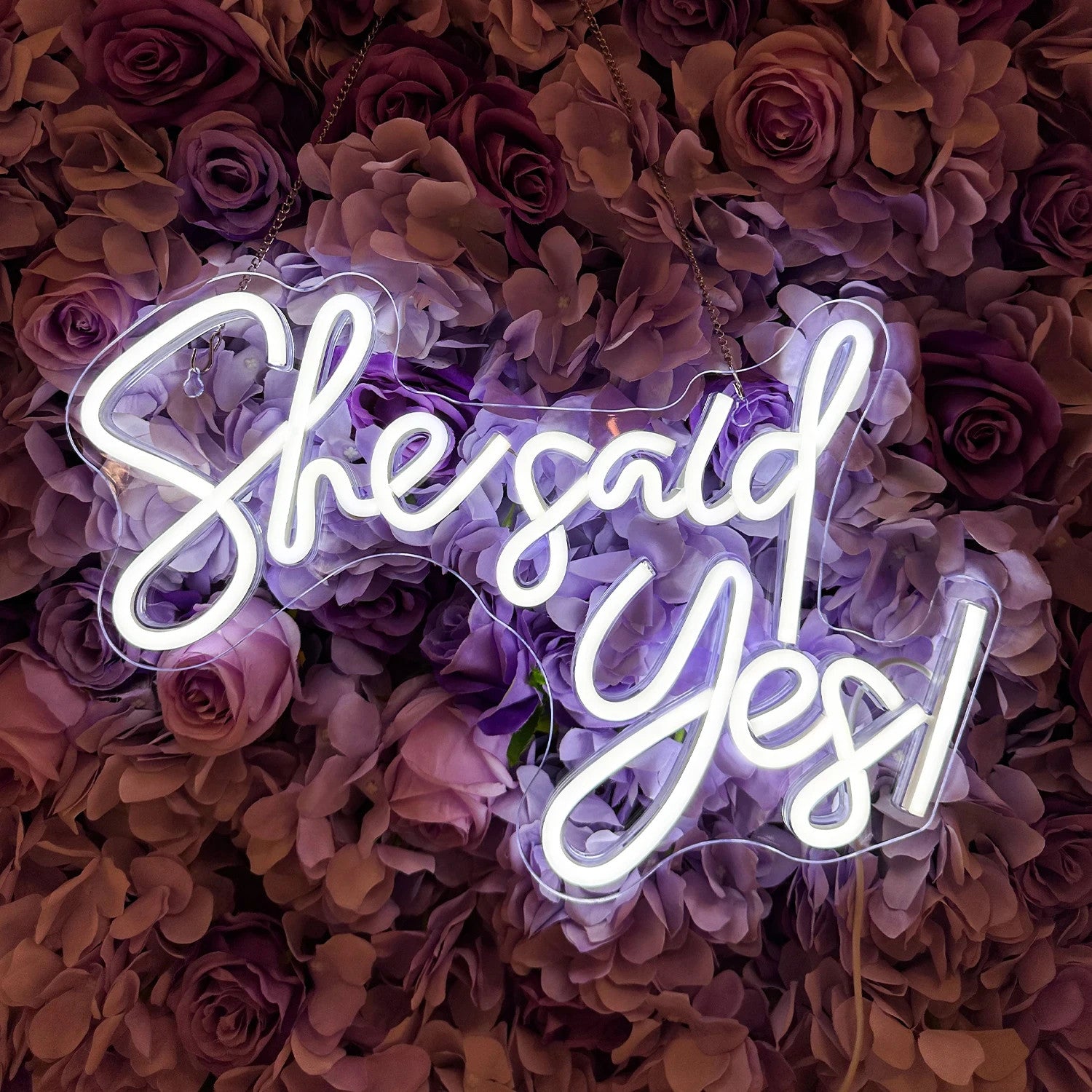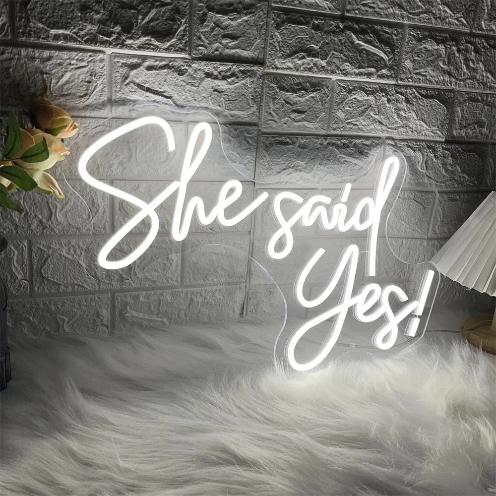 She Said Yes Neon Sign - White LED Neon Light - Wall Decor Wedding Hen Party USB