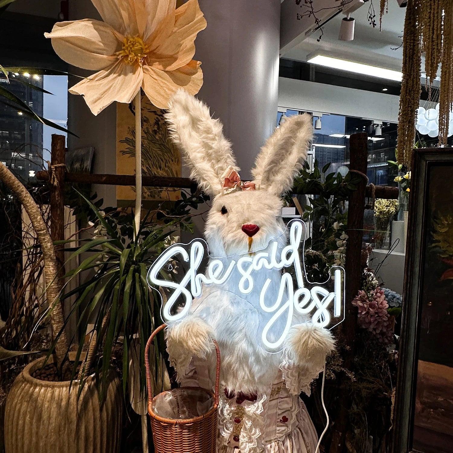 She Said Yes Neon Sign - White LED Neon Light - Wall Decor Wedding Hen Party USB