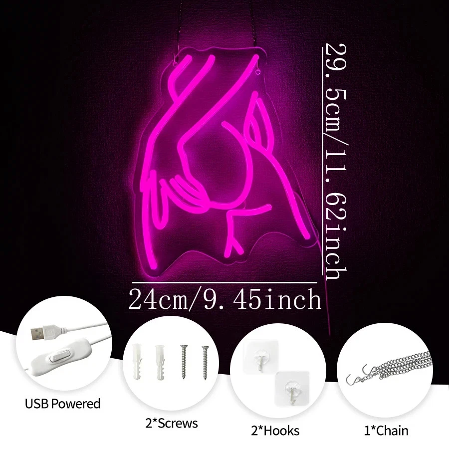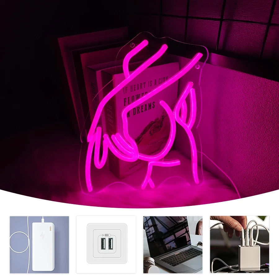 Stripper / Burlesque Girl Neon Sign - LED Light - Wall Strip Club Sexy Booty USB