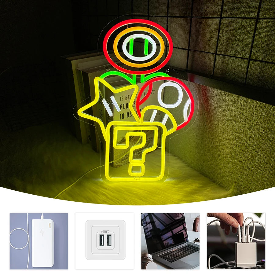 Super Mario Themed Neon Light - Nintendo Retro Gaming Sign