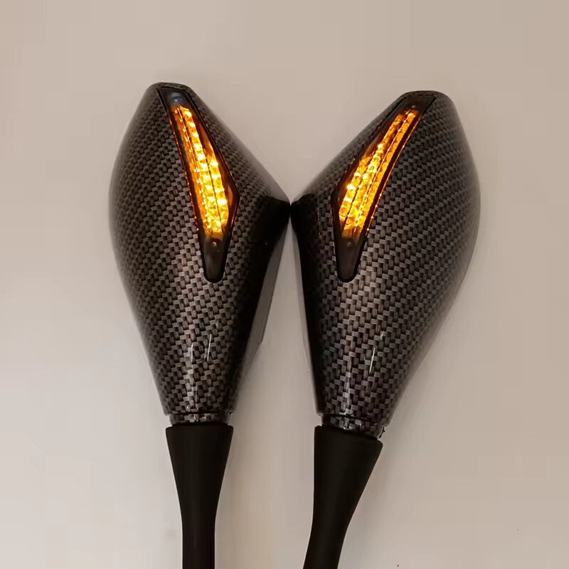 Universal Carbon Wing Mirrors With Integrated smoked LED Indicators - Motorbike