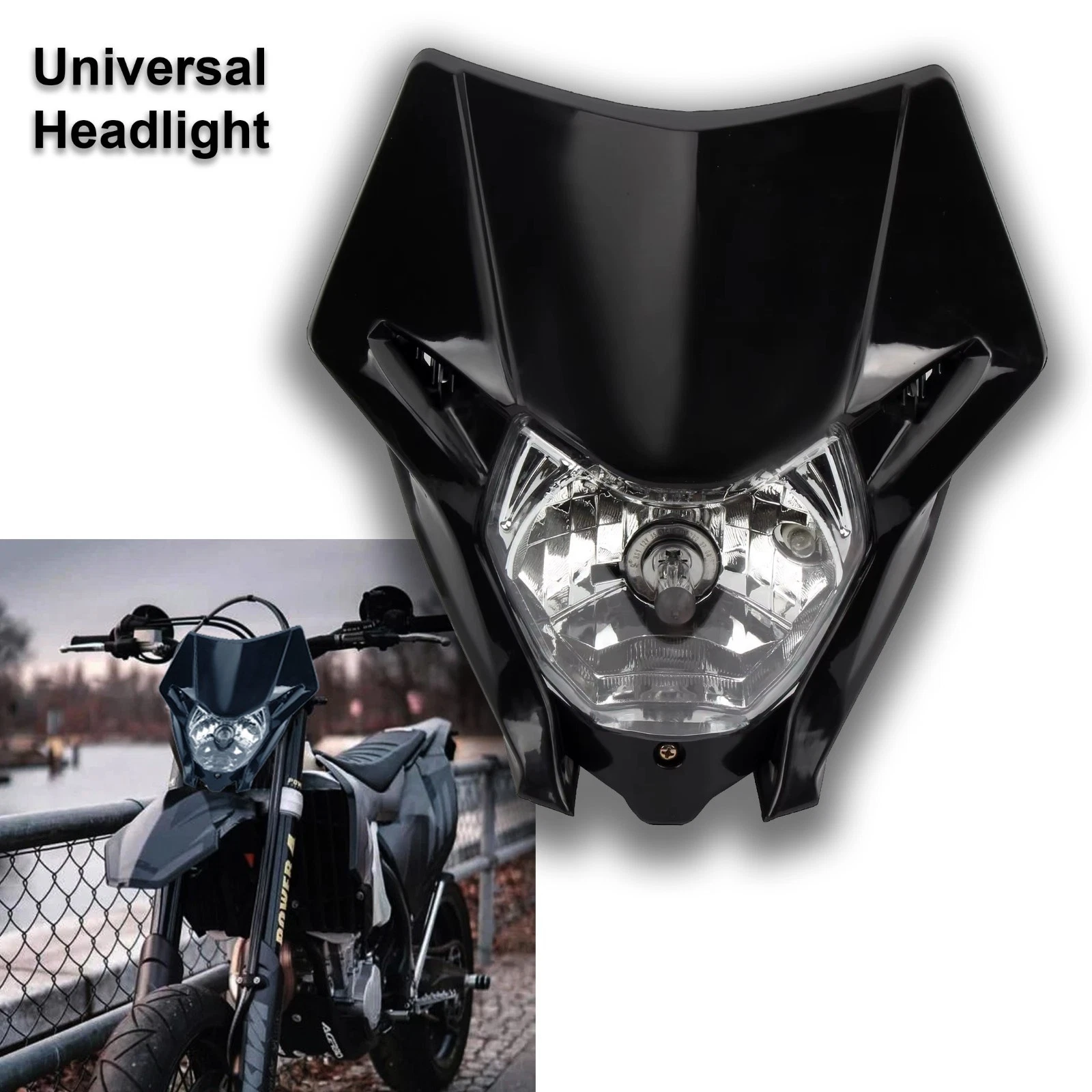 Universal Supermoto Enduro Headlight - For Honda Suzuki Yamaha Motorcycle BLACK