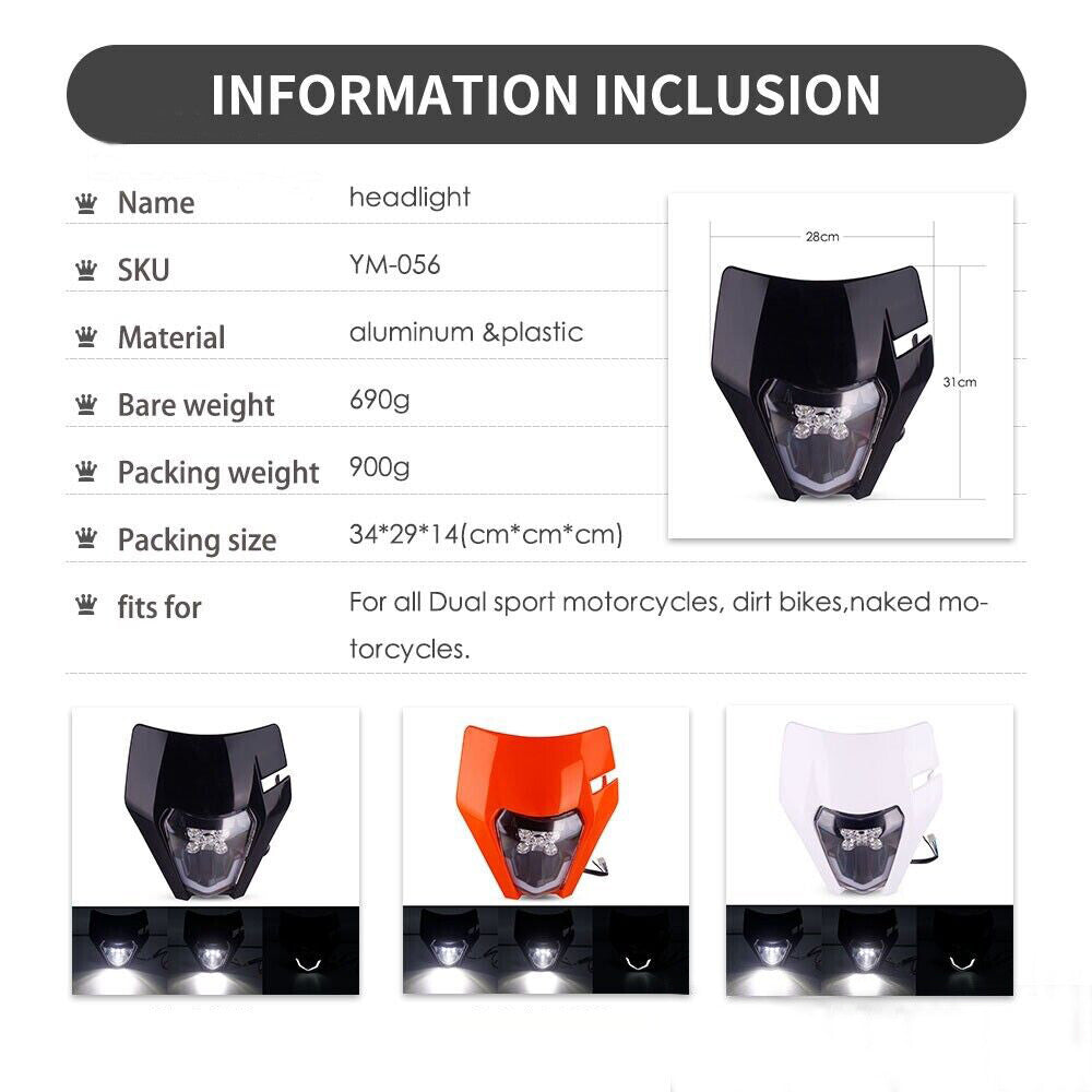 Universal Supermoto LED Headlight - For Kawasaki Suzuki Yamaha Motorcycle etc