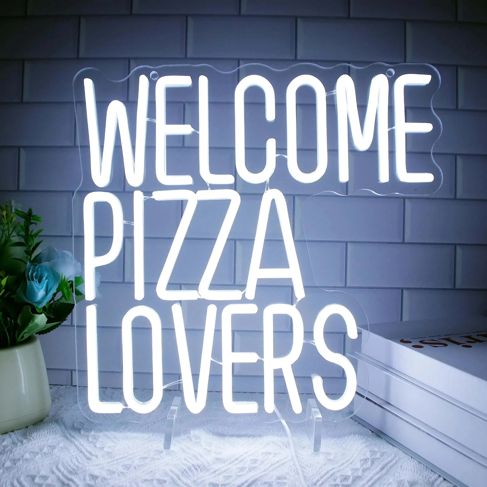 Welcome Pizza Lovers Neon Sign - LED Light Fast Food Pizza Shop Takeaway Italian
