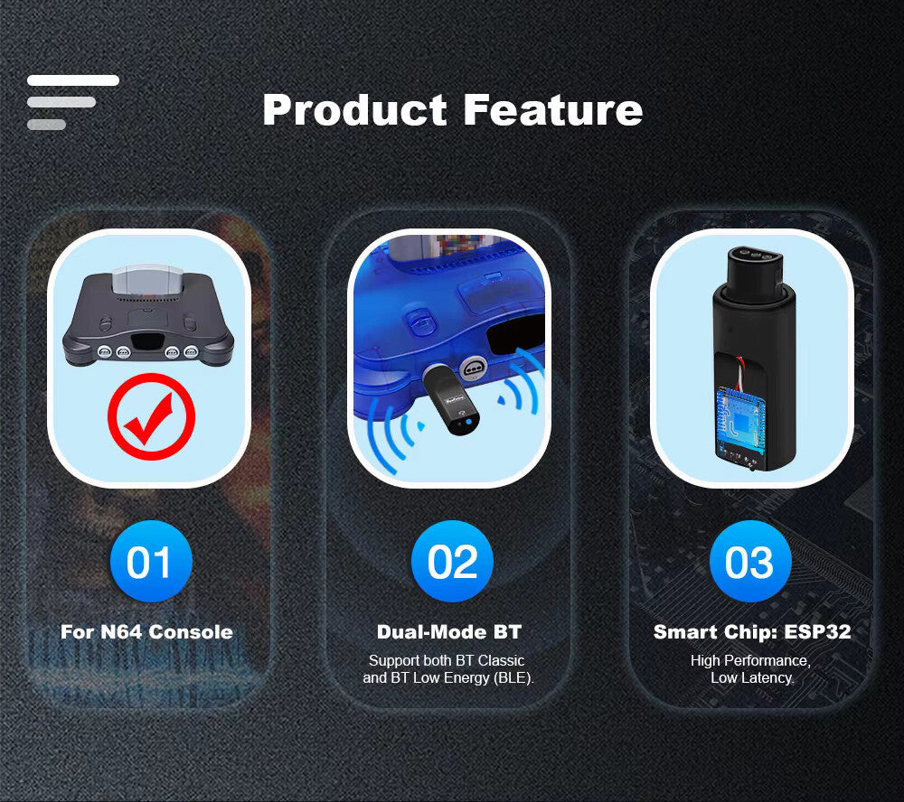BlueRetro serves as a Bluetooth controller adapter designed for the Nintendo 64 console. This open-source initiative is built upon the darthcloud framework and utilizes the widely recognized ESP32 chip. It is capable of supporting wireless controllers from various original consoles, including the Wii, Switch, PS3, PS4, PS5, and Xbox One.